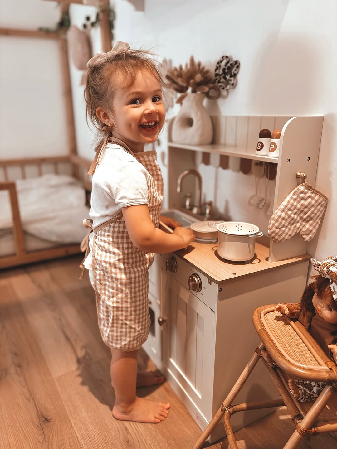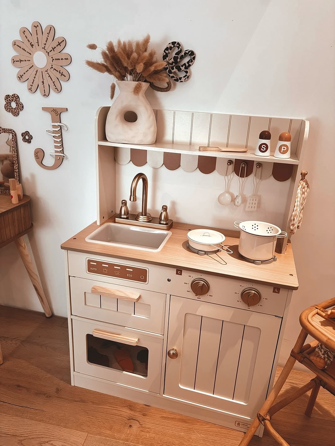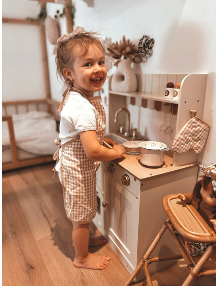 Είναι μια κανονική κουζίνα που τα έχει όλα και είναι στο μέγεθος του παιδιού για να έχει μία αληθινή εμπειρία μαγειρικής.