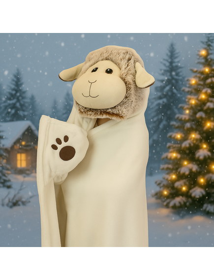 Noxxiez Fleece παιδική κουβέρτα με κουκούλα και χεράκια- Προβατάκι