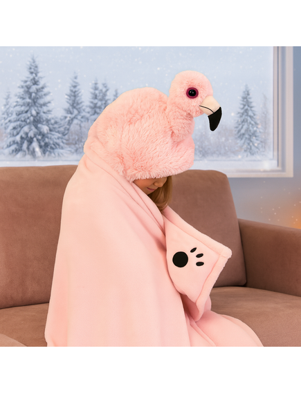 Noxxiez Fleece παιδική κουβέρτα με κουκούλα και χεράκια- Φλαμίνγκο