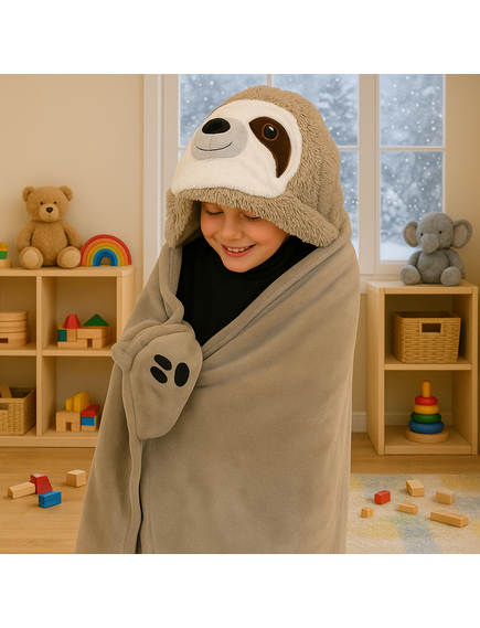 Noxxiez Fleece παιδική κουβέρτα με κουκούλα και χεράκια-Sloth