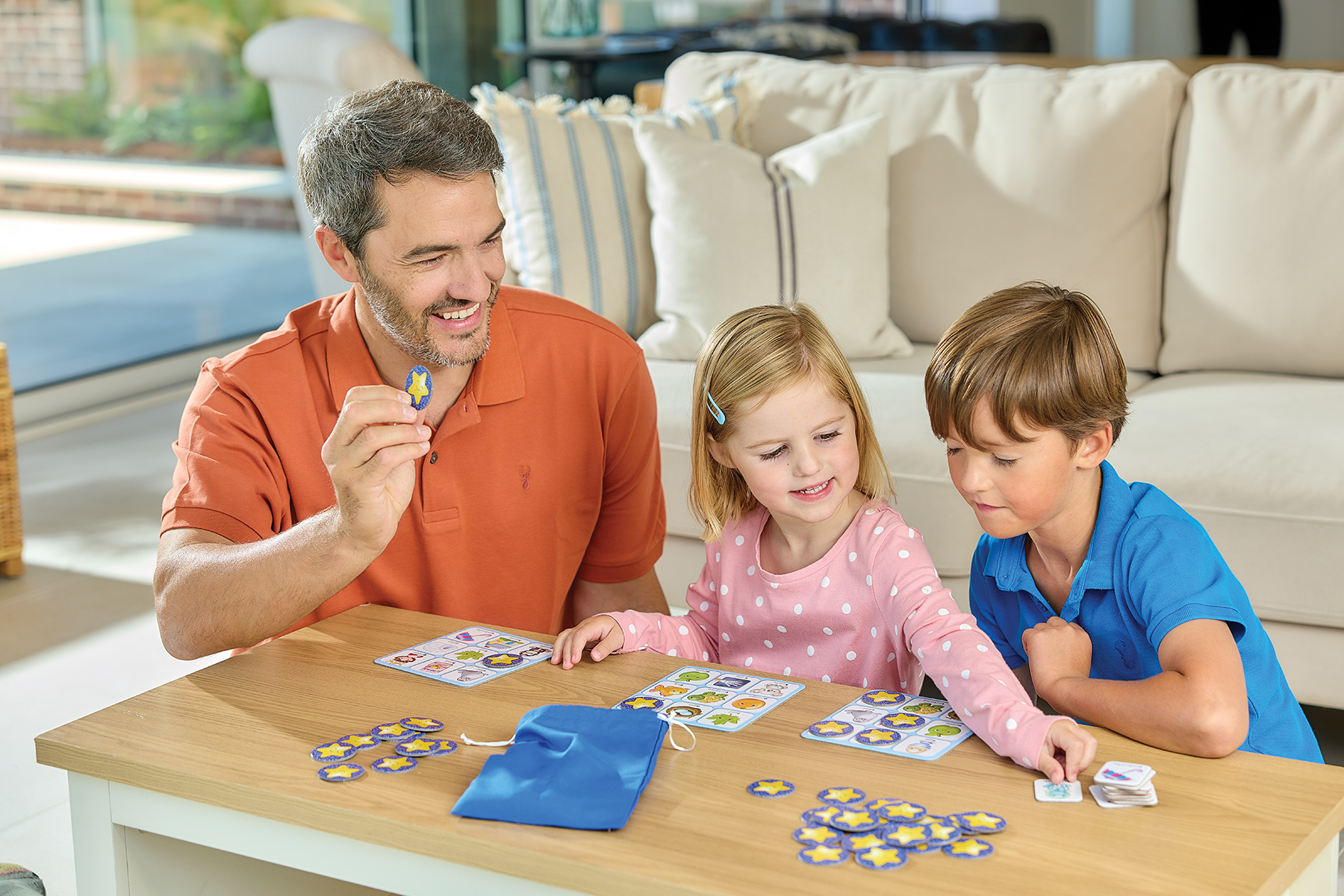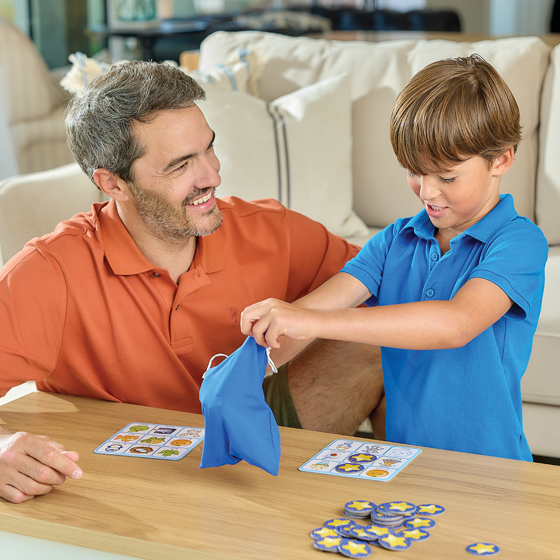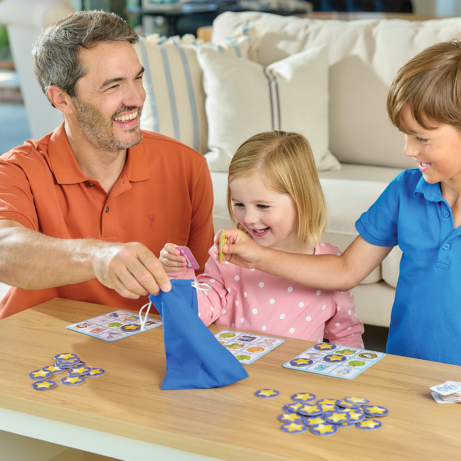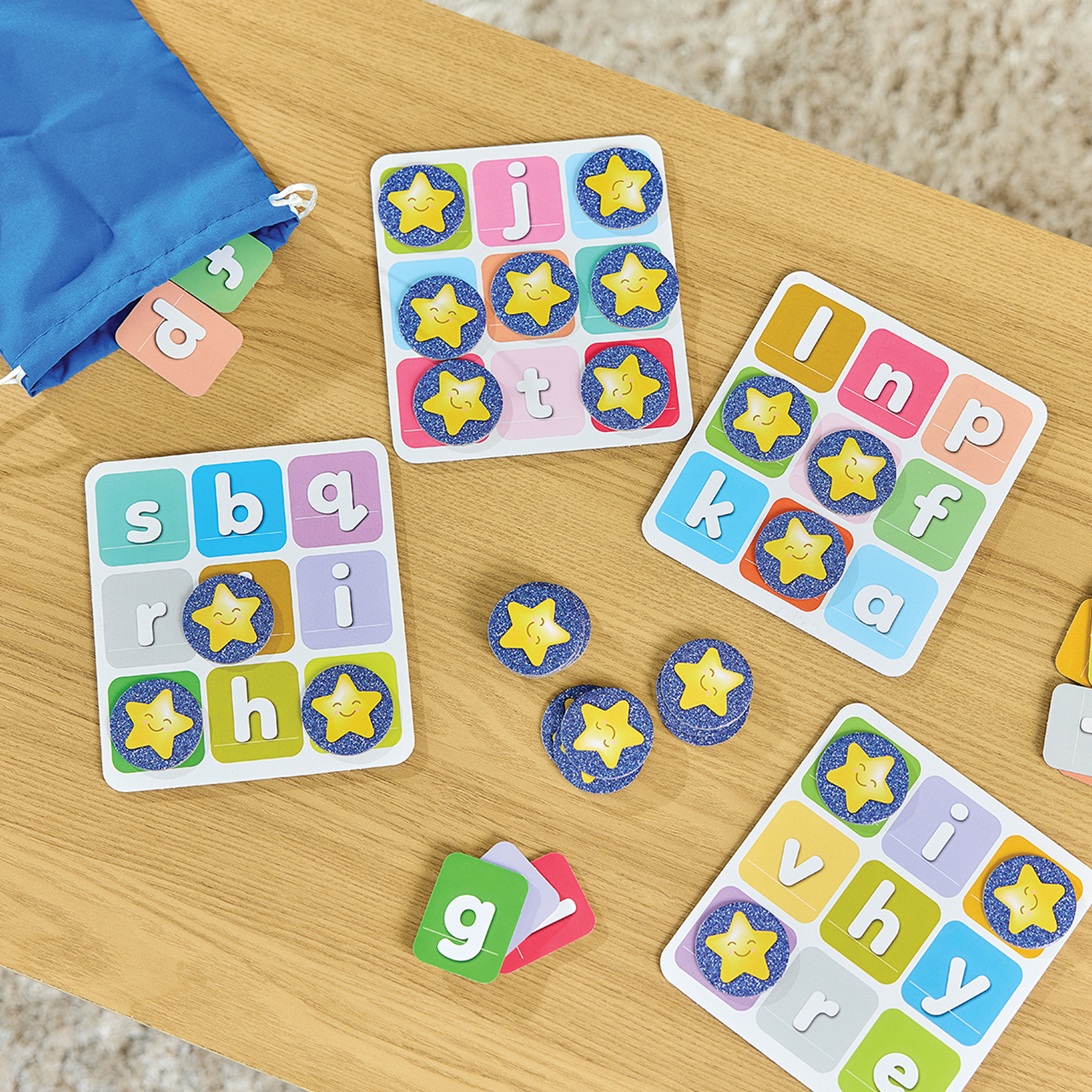 - Οι παίκτες διαλέγουν κάρτες γραμμάτων και ταιριάζουν τις με τα ταμπλό τους.
