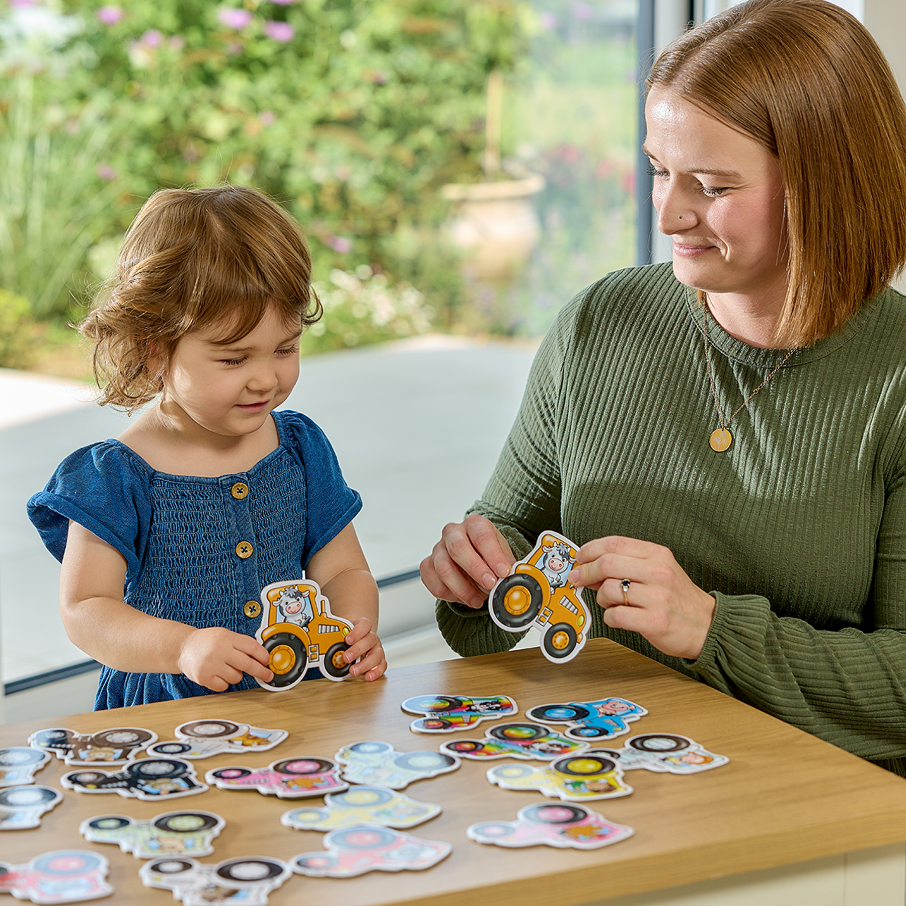 Το Tractor Tractor είναι το ιδανικό πρώτο παιχνίδι μνήμης και αντιστοίχισης για παιδιά από 2 ετών και άνω. Με θέμα τη φάρμα, τα παιδιά θα απολαύσουν να ανακαλύπτουν και να ταιριάζουν τρακτέρ που οδηγούνται από χαριτωμένα ζωάκια όπως πάπιες, αγελάδες, χοίρους, πρόβατα και κοτόπουλα.