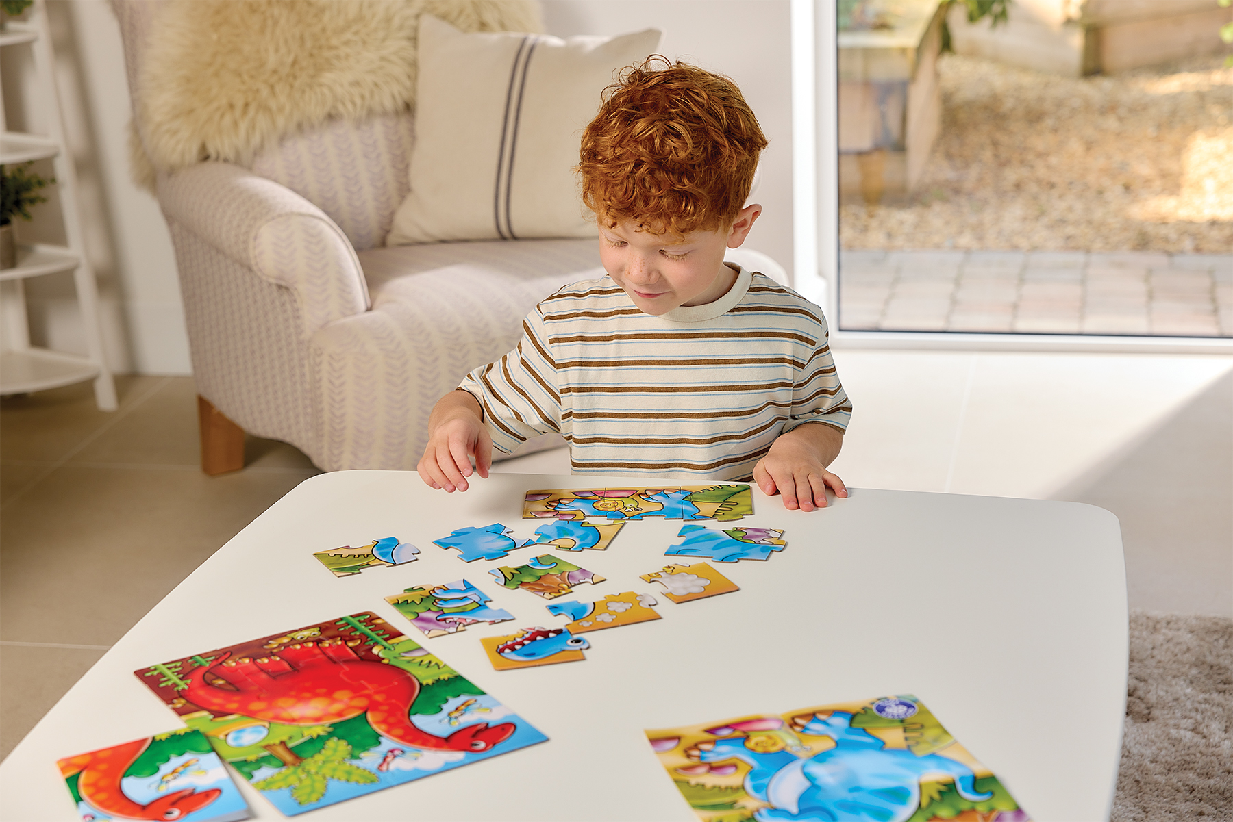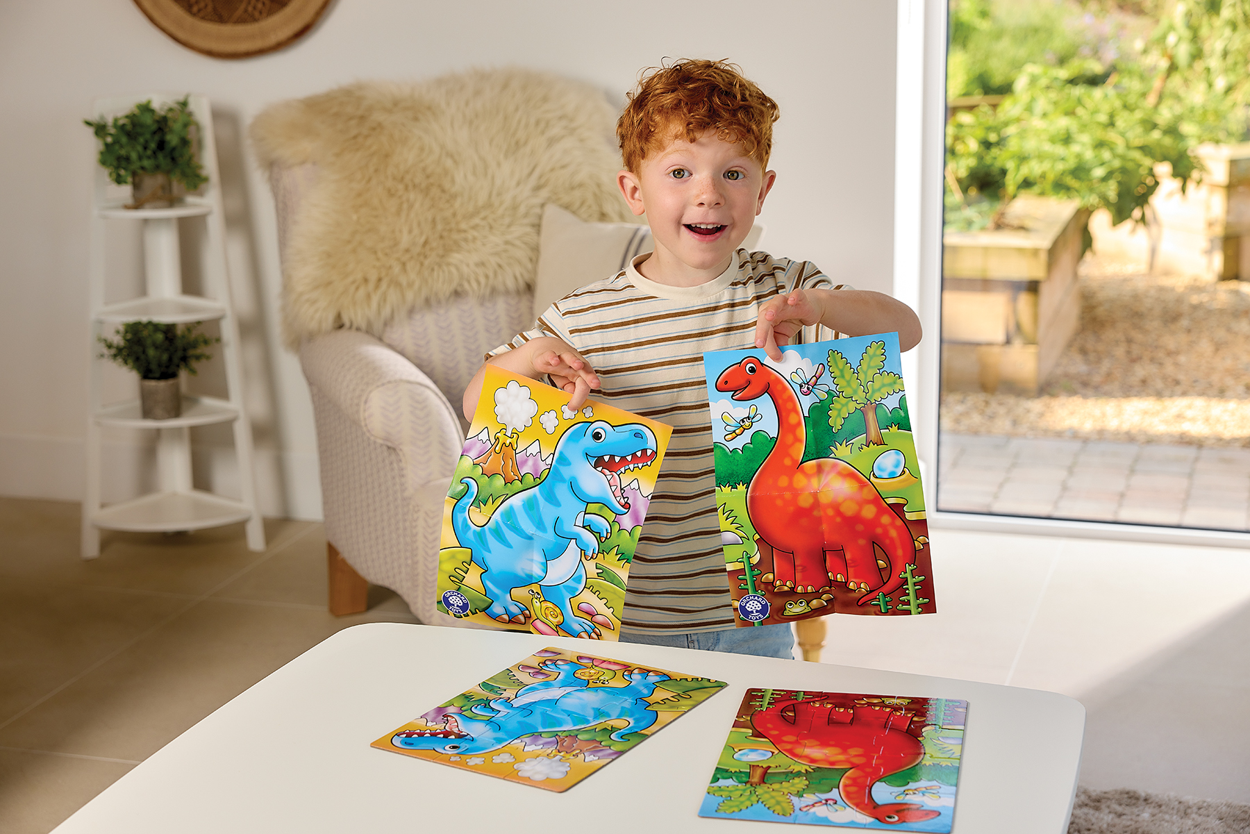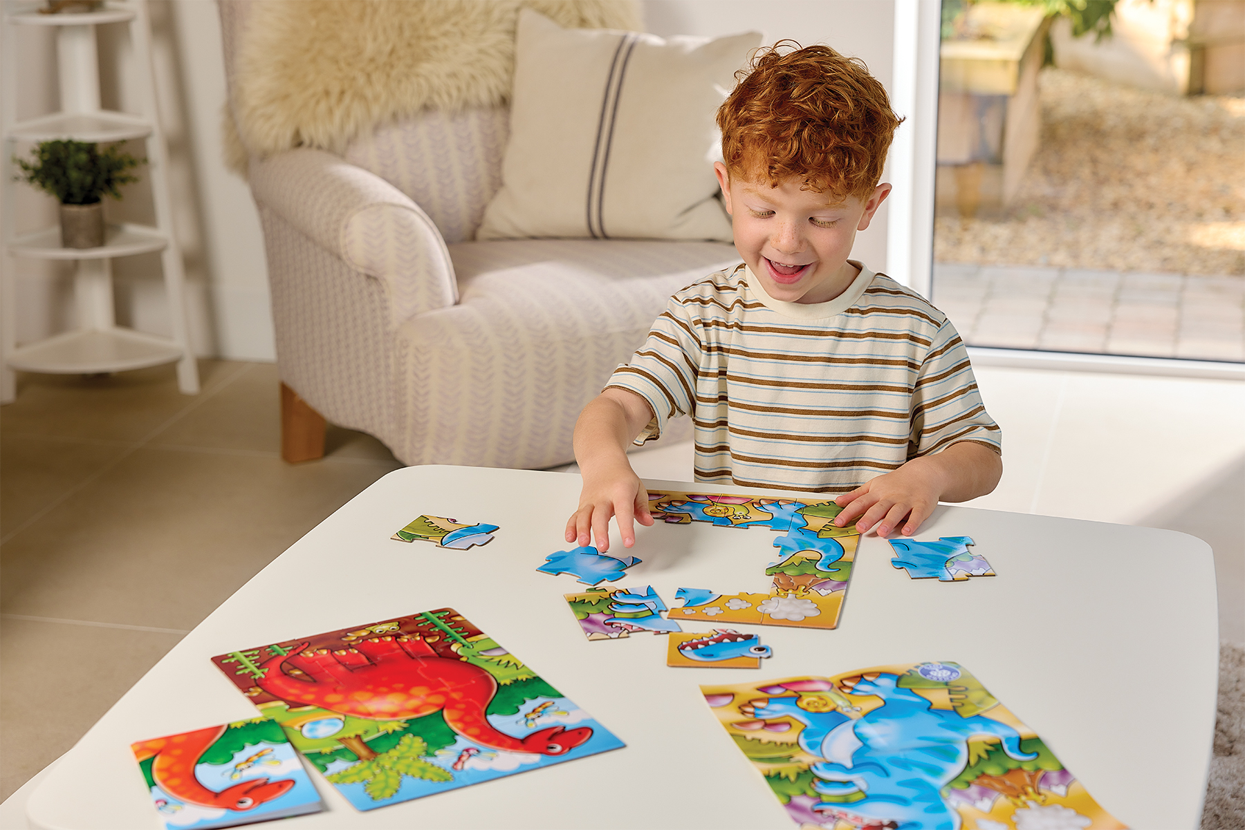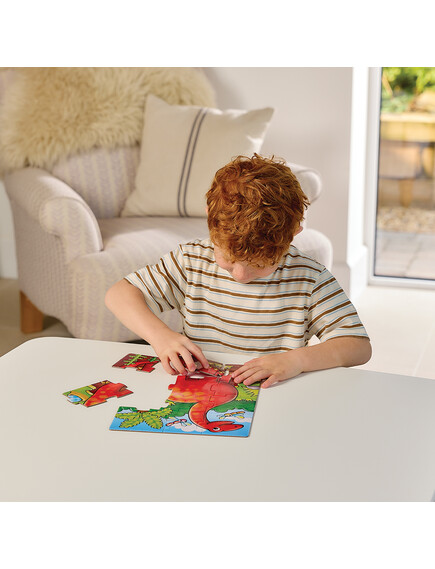 - Τα παιδιά συναρμολογούν τα κομμάτια του παζλ για να ολοκληρώσουν τις σκηνές με δεινόσαυρους.
