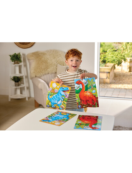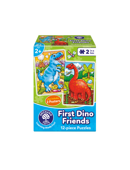 Το First Dino Friends περιλαμβάνει 2 χαριτωμένα παζλ με θέμα δεινοσαύρους, ειδικά σχεδιασμένα για παιδιά από 2 ετών και άνω. Ιδανικό για πρώιμη ανάπτυξη δεξιοτήτων επίλυσης προβλημάτων μέσω διασκεδαστικού, πρακτικού παιχνιδιού.