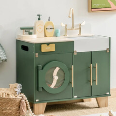 Ένα πρωτότυπο σετ πλυντηρίου με νιπτήρα, σε ασυναγώνιστο design για ατελείωτο δημιουργικό παιχνίδι! Με χρυσές λεπτομέρειες και ρετρό αισθητική για να το τοποθετήσετε σε οποιονδήποτε χώρο του σπιτιού σας! Είναι κατασκευασμένο από ανθεκτικό ξύλο, είναι σε κατάλληλο μέγεθος και έχει πρακτικά...