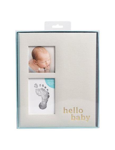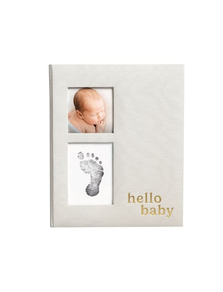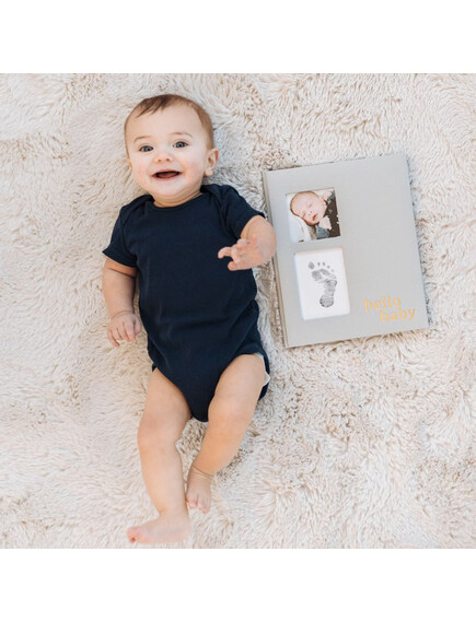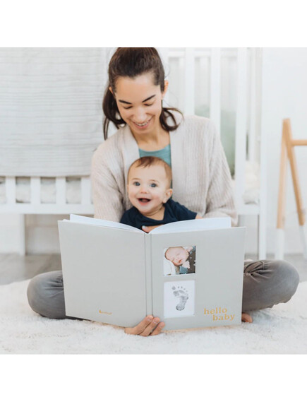 Κράτησε τα μικρά χεράκια και ποδαράκια του μωρού με το συμπεριλαμβανόμενο μελάνι καθαρής αφής, ώστε να αποτυπώσεις τα αποτυπώματα με ασφάλεια και ευκολία. Τοποθέτησε τα αποτυπώματα στο εξώφυλλο ή μέσα στο βιβλίο και δημιούργησε ένα μοναδικό άλμπουμ αναμνήσεων, γεμάτο φωτογραφίες και μικρές σημειώσεις από τις πιο τρυφερές στιγμές.