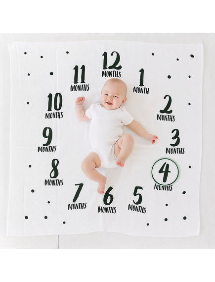 Αυτό το αξιολάτρευτο σετ κουβέρτας φωτογραφιών περιλαμβάνει μια κουβέρτα μουσελίνας 100% βαμβάκι και 3 props για την παρακολούθηση της ανάπτυξης του μωρού κατά τη διάρκεια του πρώτου έτους του. Η μαλακή κουβέρτα είναι διακοσμημένη με τους αριθμούς 1 έως 12 σε κύκλο, ιδανική για να διακοσμεί τις μηνιαίες φωτογραφίες του μικρού σας.