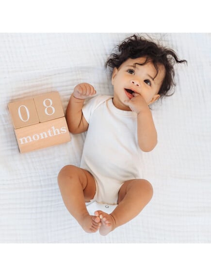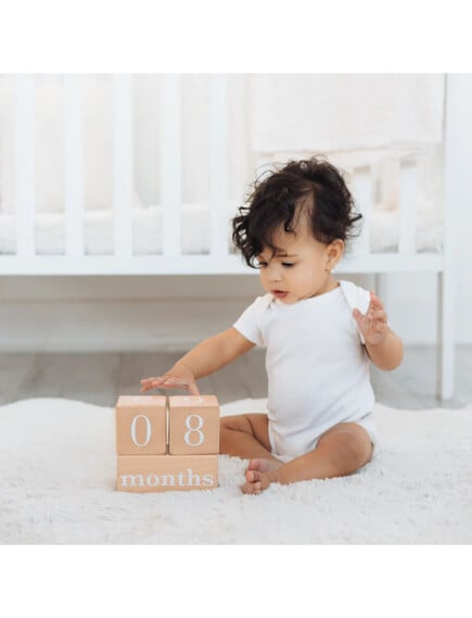 Το σετ περιλαμβάνει αριθμημένα κυβάκια και βάση με “week/weeks” και “month/months”, ώστε να μπορείς εύκολα να δείξεις την ανάπτυξη του μωρού ή την πρόοδο της εγκυμοσύνης σου με έναν καθαρό και κομψό τρόπο.