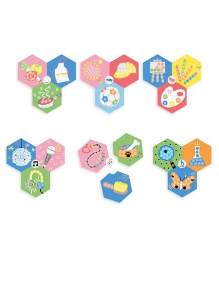 Βρέξτε λίγο τα σφουγγαράκια με νερό και τοποθετήστε τα πάνω στα πολύχρωμα πρότυπα. Τα παιδιά μπορούν να δημιουργήσουν, να συνδυάσουν και να ανακαλύψουν τα αγαπημένα τους χόμπι με ατελείωτη φαντασία!