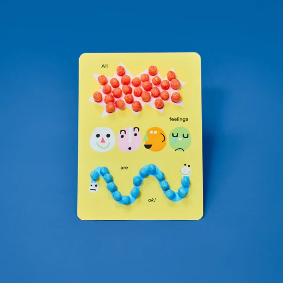 Βρέξτε λίγο τα σφουγγαράκια με νερό και τοποθετήστε τα πάνω στα πρότυπα για να δημιουργήσετε κάρτες με θετικά μηνύματα. Τα παιδιά μπορούν να εξερευνήσουν τα συναισθήματά τους, να εκφραστούν και να μοιραστούν ιδέες και συναισθήματα με γονείς, φίλους ή δασκάλους.
