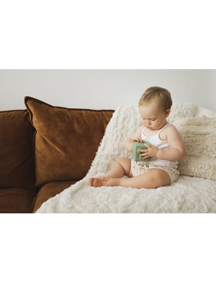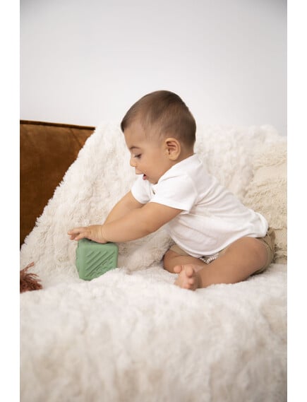 Κατασκευασμένος από 100% φυσικό καουτσούκ, ένα ελαφρύ, εύκαμπτο και υγιεινό υλικό για το μωρό, αυτός ο κύβος είναι τέλειος για την ανάπτυξη των κινητικών δεξιοτήτων του μωρού και της αφής!
