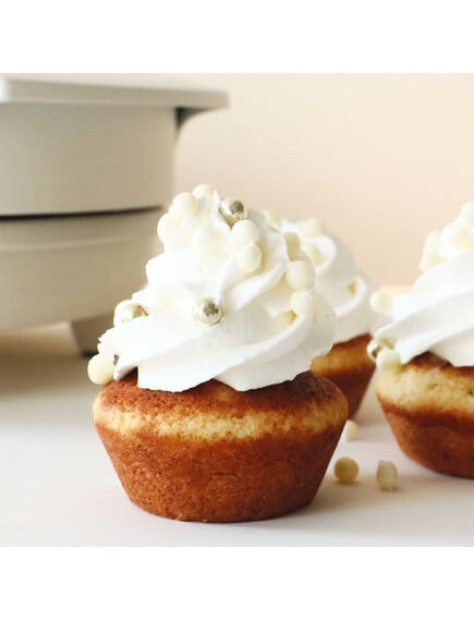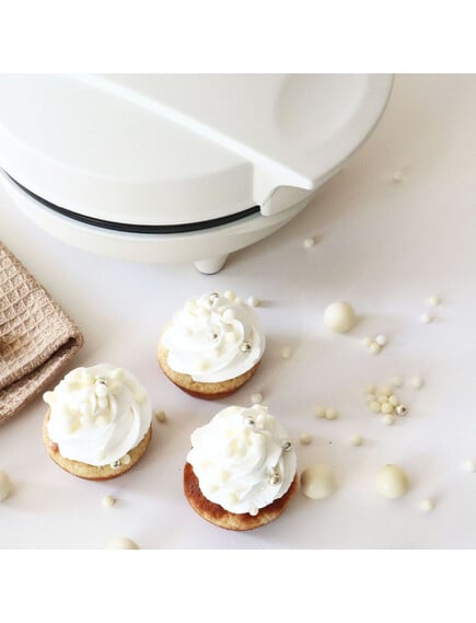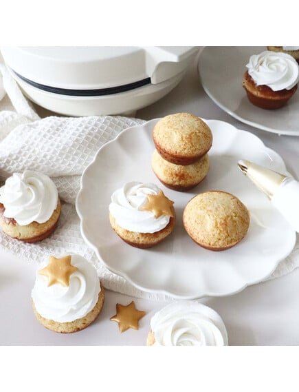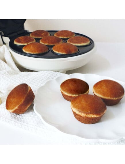Ξεχάστε τον προθέρμανση του φούρνου και τα περίπλοκα σκεύη. Το μόνο που χρειάζεται είναι το μείγμα σου! Ρίξε το στις ειδικές θήκες, κλείσε τη συσκευή και μέσα σε 4 λεπτά έχεις έτοιμα 7 τέλεια ψημένα muffins ή cupcakes: μαλακά από μέσα, με ελαφρώς τραγανή κρούστα απ’ έξω – ό,τι πρέπει για να τα διακοσμήσεις με σοκολάτα, βουτυρόκρεμα ή ό,τι άλλο φανταστείς!