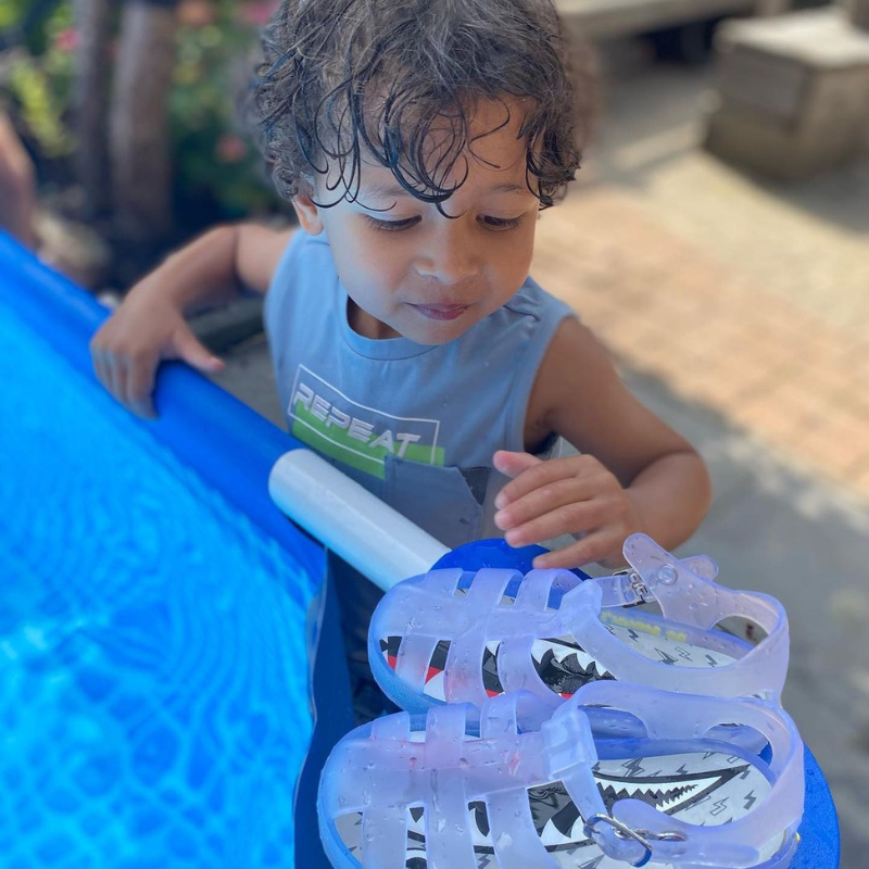Η στιβαρή αντιολισθητική σόλα προστατεύει τα πόδια των παιδιών από αιχμηρά αντικείμενα στο νερό.