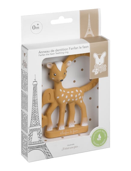 Αυτό το μασητικό από φυσικό καουτσούκ είναι φτιαγμένο ακριβώς για αυτή τη φάση — να το μασάει το μωρό και να ανακουφίζονται τα ούλα του.