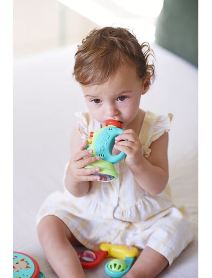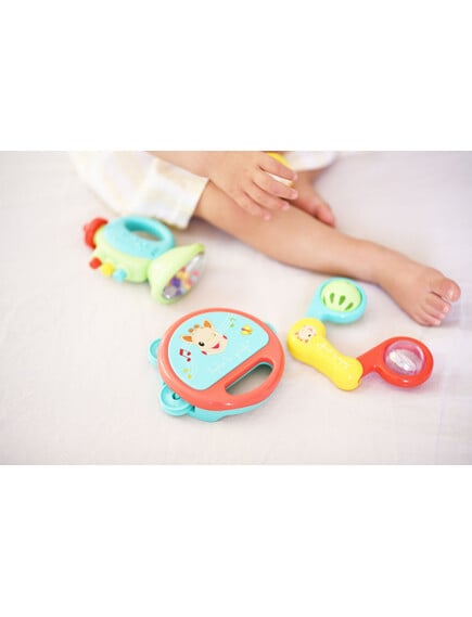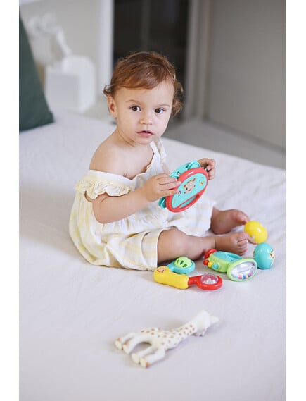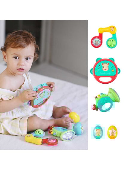 Το “Πρώτο Μουσικό Σετ” με τη Σόφι τη Καμηλοπάρδαλη είναι το ιδανικό δώρο για να μυήσει το μωρό σας στους ήχους, τον ρυθμό και το δημιουργικό παιχνίδι. Με 5 πολύχρωμα μουσικά παιχνίδια, ανοίγει ένα παράθυρο εξερεύνησης που συνδυάζει διασκέδαση και ανάπτυξη.