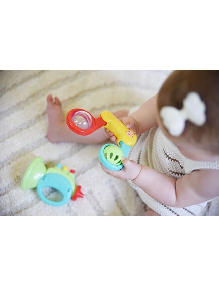 Τα ζωηρά χρώματα τραβούν την προσοχή, οι ήχοι εξάπτουν την περιέργεια και ο εργονομικός σχεδιασμός βοηθά το παιδί να χειρίζεται εύκολα κάθε όργανο, ενισχύοντας την αυτοπεποίθησή του.