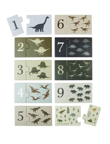 Научете се да броите от едно до десет с този прекрасен комплект от любимите ни динозаври от A little lovely company! Включва 10 индивидуални пъзела, с число от едната страна и динозаври и картинки, които да преброите от другата. Образователна и забавна игра, изработена от дебел картон, така че малките ръчички да могат лесно да боравят с нея.