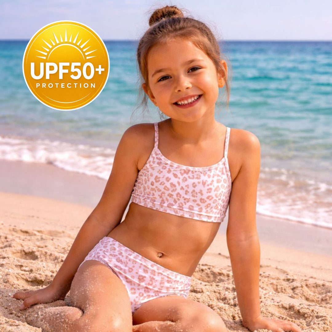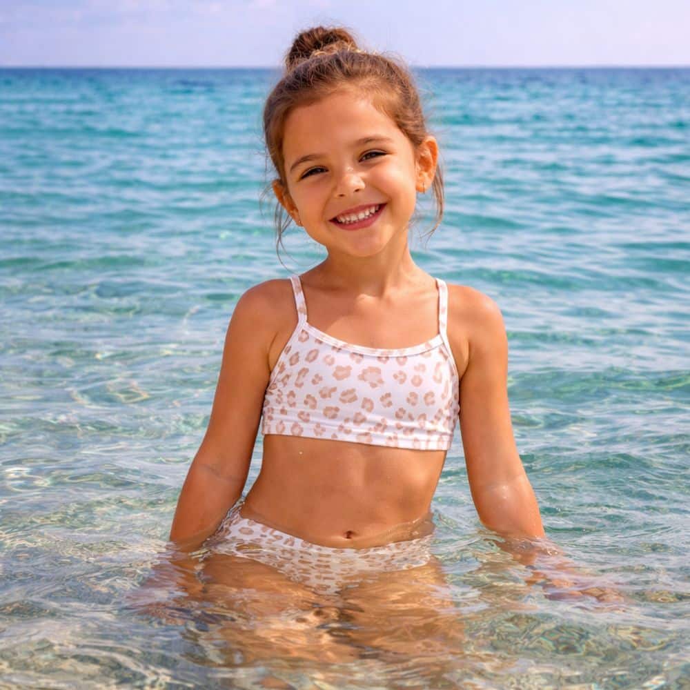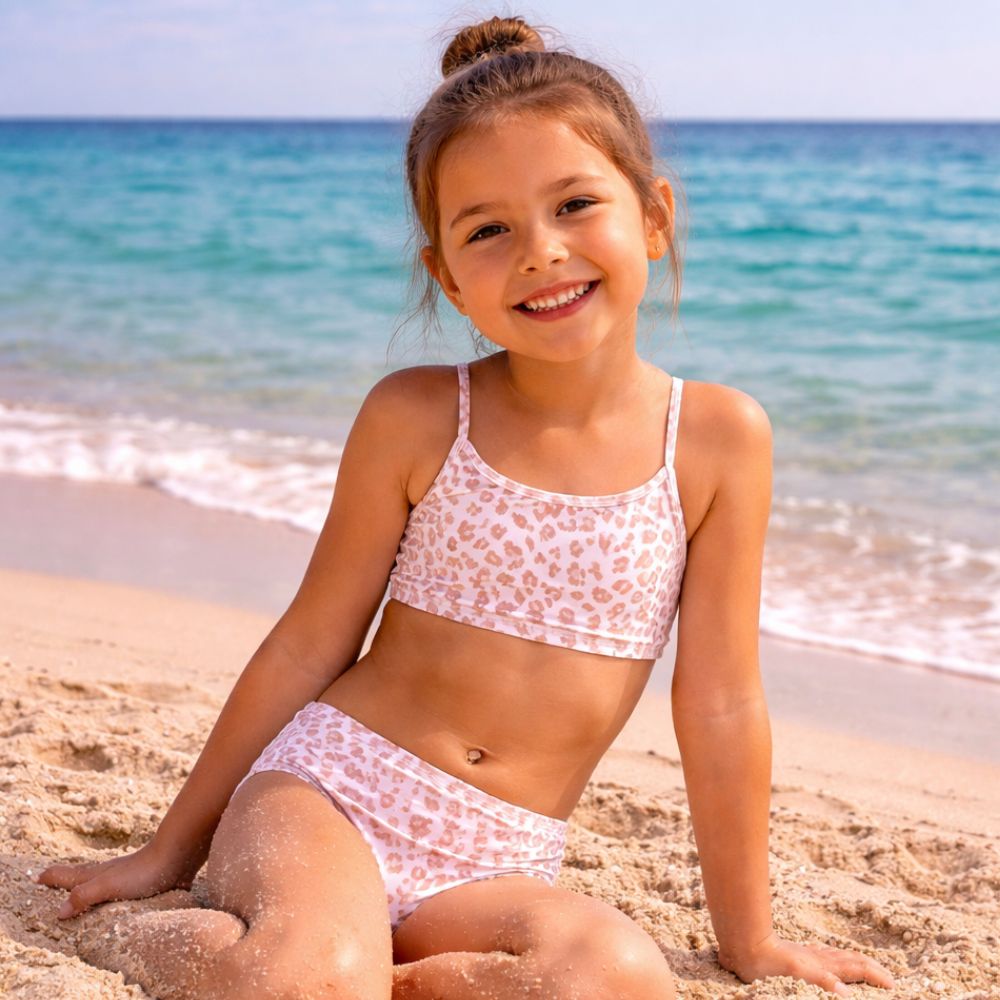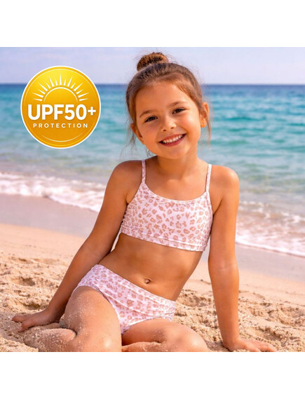 Αυτό το παιδικό μπικίνι με παιχνιδιάρικο animal print είναι φτιαγμένο για να ξεχωρίζει.
