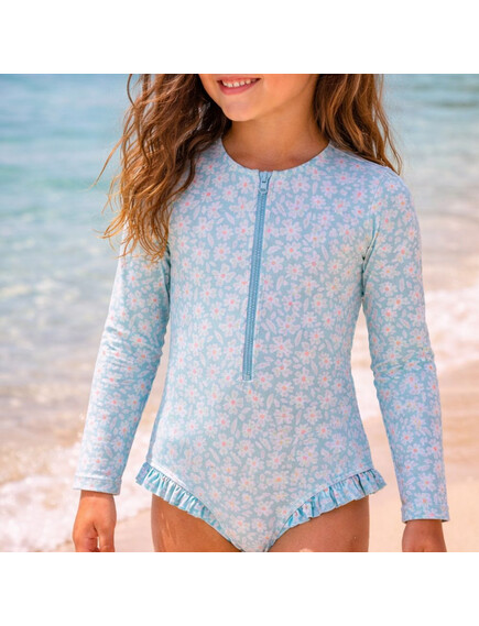 Swim Essentials Παιδικό Ολόσωμο μαγιό με προστασία UPF50+ και μακριά μανίκια- "Green Flowers"