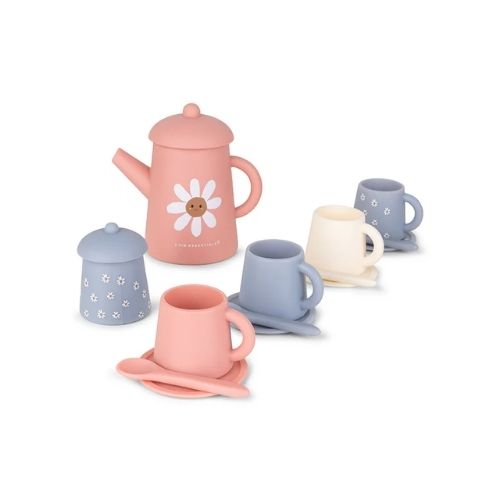 Χαρούμενο και ανθεκτικό σετ τσαγιού, κατασκευασμένο από εύκαμπτη σιλικόνη, ιδανικό για ατελείωτα πάρτι με τσάι γεμάτα φαντασία και δημιουργικό παιχνίδι — μέσα και έξω από το σπίτι.