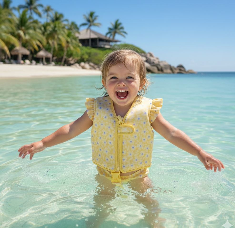 - Ιδανικό για την παραλία και την πισίνα, κρατάει το παιδί ζεστό και ασφαλές στο κρύο νερό.