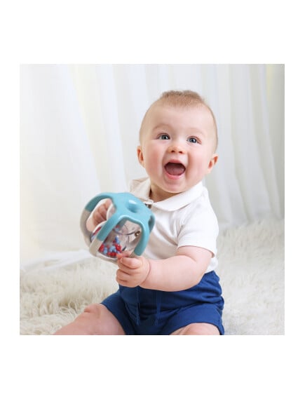 Με εργονομικό σχεδιασμό και εύκολα λαβές, η κουδουνίστρα ενθαρρύνει το μωρό να πιάσει, να κουνήσει και να πειραματιστεί με τον ήχο και την κίνηση των μπαλών.
