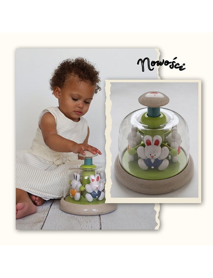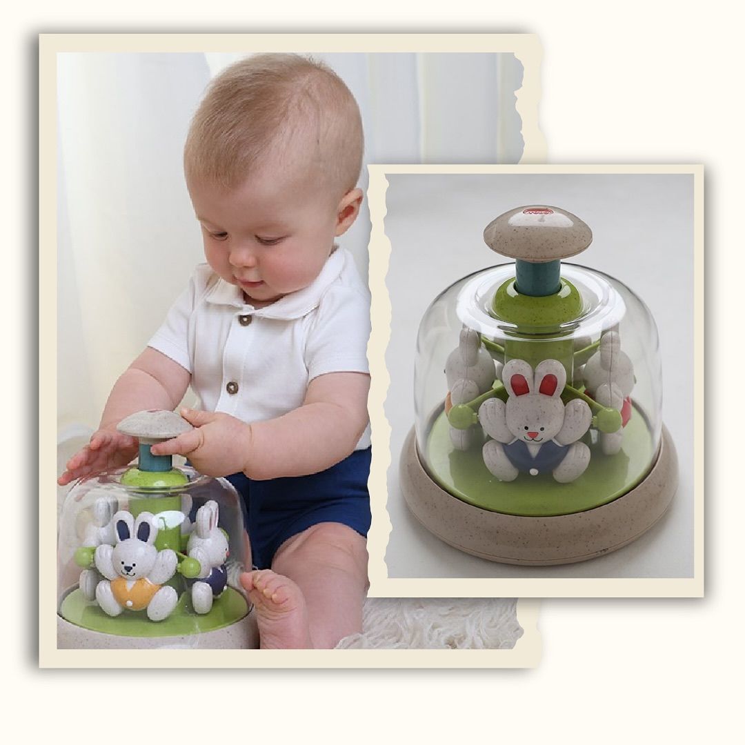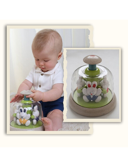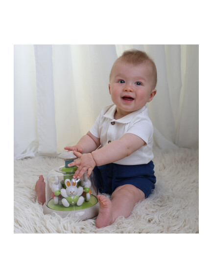 Το Rabbit Carousel είναι ένα υπέροχο παιχνίδι για μωρά από 6 μηνών και άνω. Με χαριτωμένους χαρακτήρες που περιστρέφονται απαλά, χαρίζει στο παιδί αμέτρητες στιγμές διασκέδασης και εξερεύνησης. Ο απαλός ήχος που ακούγεται κατά την περιστροφή, σε συνδυασμό με την ομαλή και μεγάλης διάρκειας κίνηση, κρατούν το ενδιαφέρον του μωρού ζωντανό και ενεργοποιούν τις αισθήσεις του.
