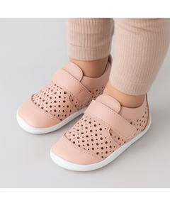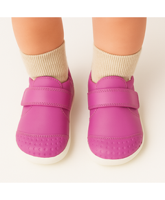 Οι γονείς συνήθως δυσκολεύονται να φορέσουν τα παπούτσια στα παιδιά γιατί μαζεύουν τα δάχτυλά τους και αντιστέκονται κλωτσώντας. Με το λάστιχο και Velcro κούμπωμα, σε συνδυασμό με το πολύ μαλακό υλικό κατασκευής, το παπούτσι ανοίγει εύκολα και προσαρμόζεται τέλεια στο πόδι του παιδιού. Έτσι το παπούτσι θα αγκαλιάσει και θα προστατέψει το πόδι επιτρέποντάς του να διατηρεί την ευελιξία του.