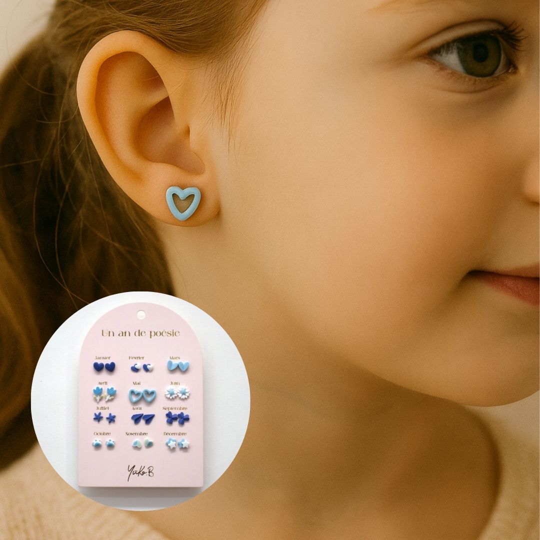 Μια όμορφη καρτέλα με 12 ζευγάρια σκουλαρίκια, ένα ζευγάρι για κάθε μήνα του χρόνου.
