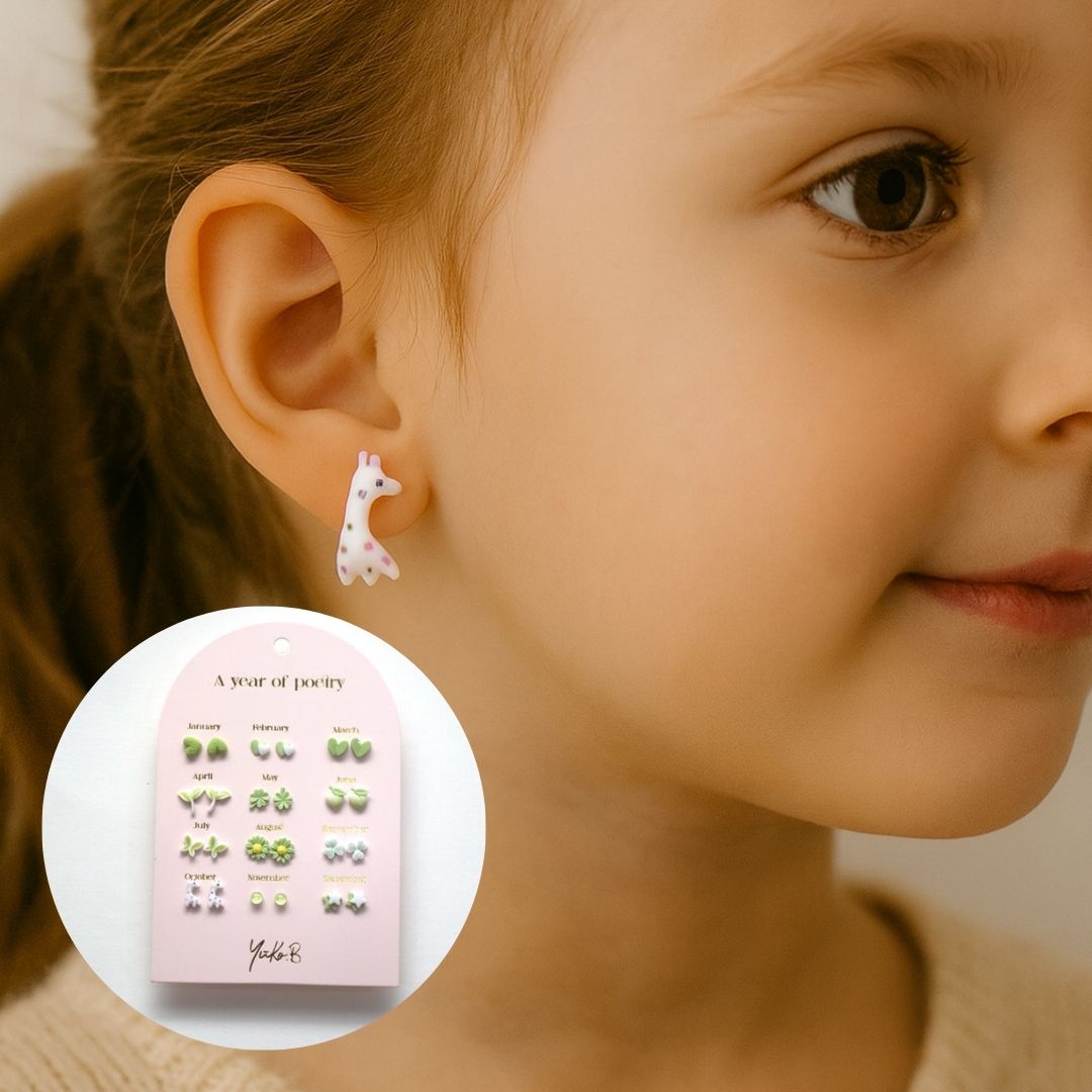 Μια όμορφη καρτέλα με 12 ζευγάρια σκουλαρίκια, ένα ζευγάρι για κάθε μήνα του χρόνου.