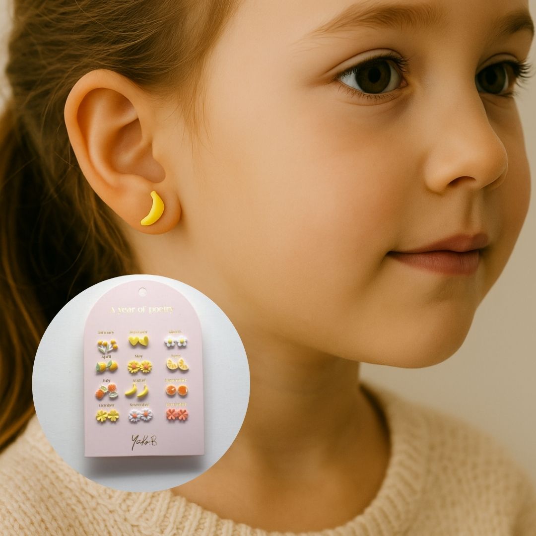 Μια όμορφη καρτέλα με 12 ζευγάρια σκουλαρίκια, ένα ζευγάρι για κάθε μήνα του χρόνου.