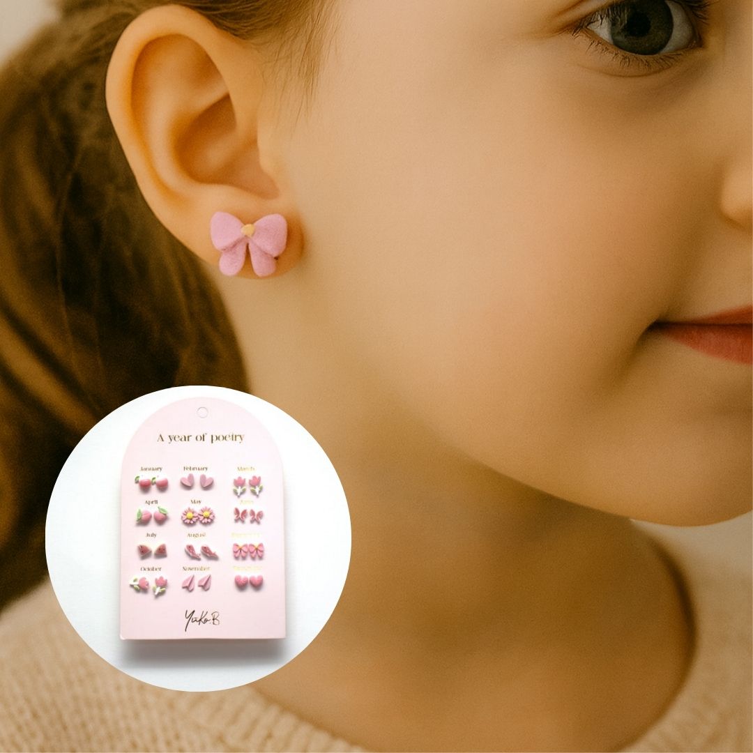 Μια όμορφη καρτέλα με 12 ζευγάρια σκουλαρίκια, ένα ζευγάρι για κάθε μήνα του χρόνου.