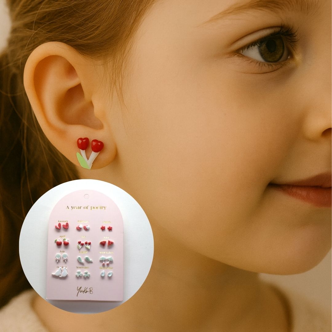 Μια όμορφη καρτέλα με 12 ζευγάρια σκουλαρίκια, ένα ζευγάρι για κάθε μήνα του χρόνου.